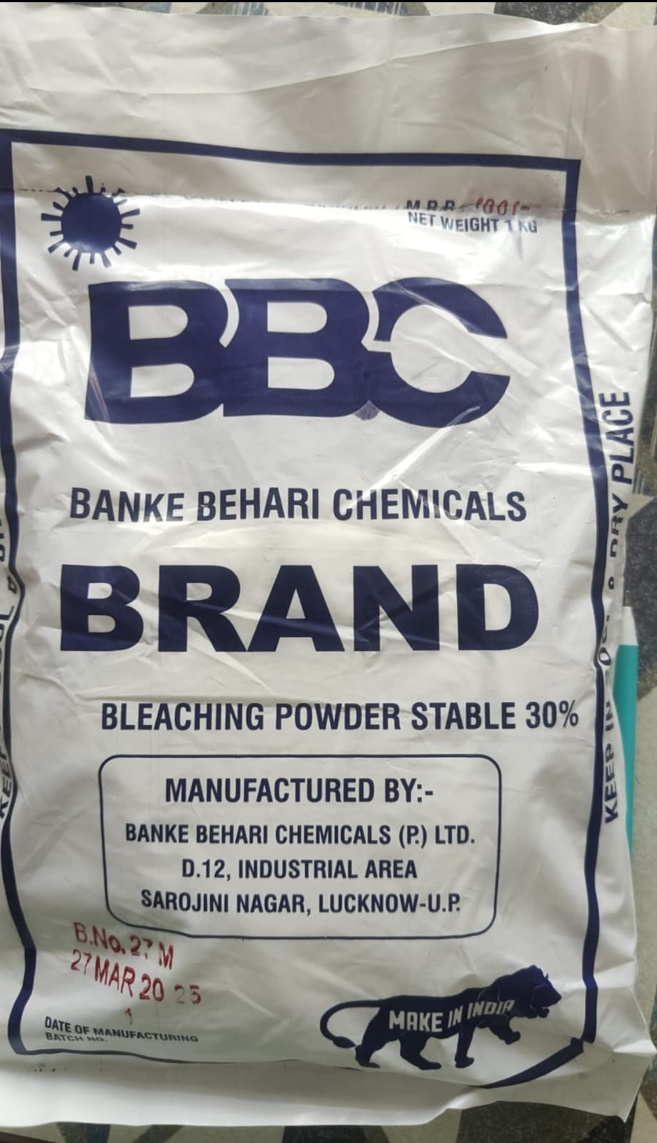 BBC Brand Stable Bleaching Powder is a high-strength disinfectant and bleaching agent, manufactured by Banke Bihari Chemicals Pvt. Ltd. It is formulated for robust industrial, municipal, and institutional applications, such as water purification, fabric bleaching, and general sanitation.