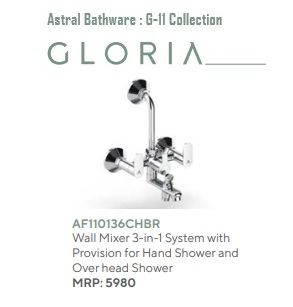 Astral AF110136CHBR Wall Mixer 3-in-1 System, Provision for Hand Shower and Overhead Shower